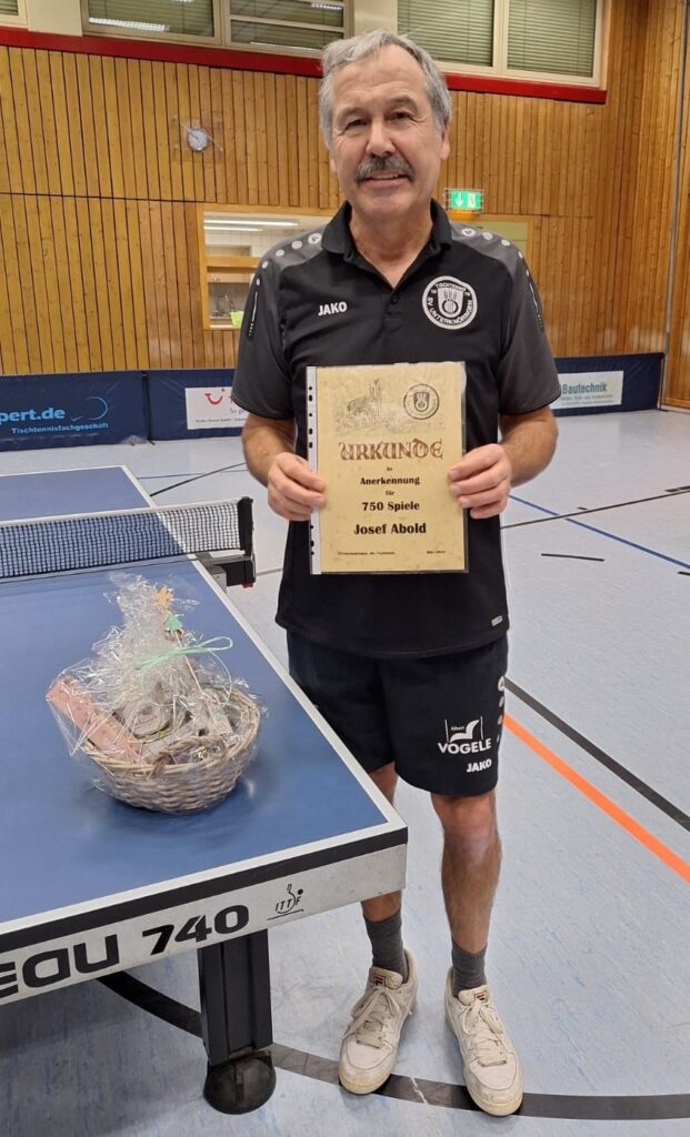 Eine besondere Ehrung erhielt Josef Abold (Foto) für 750 Punktspieleinsätze im Trikot des SV Unterknöringen. Das Gründungsmitglied der Tischtennis-Abteilung konnte neben einer Urkunde noch kleinen Präsentkorb von Abteilungsleiter Benjamin Findler in Empfang nehmen. Jeder Verein kann sich glücklich schätzen, so zuverlässige Akteure in seinen Reihen zu haben die, wenn sie gebraucht werden, jederzeit bei allen Arbeitseinsätzen zur Stelle sind, so Abteilungsleiter Benjamin Findler.