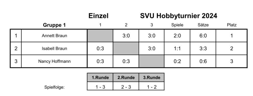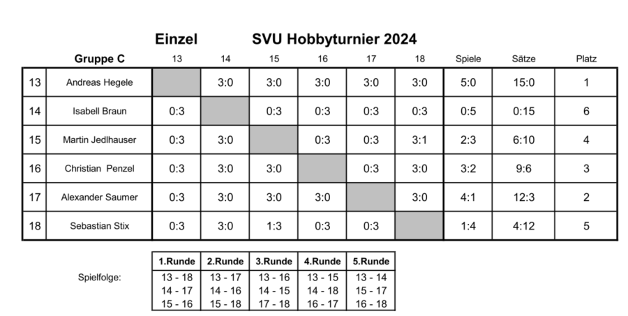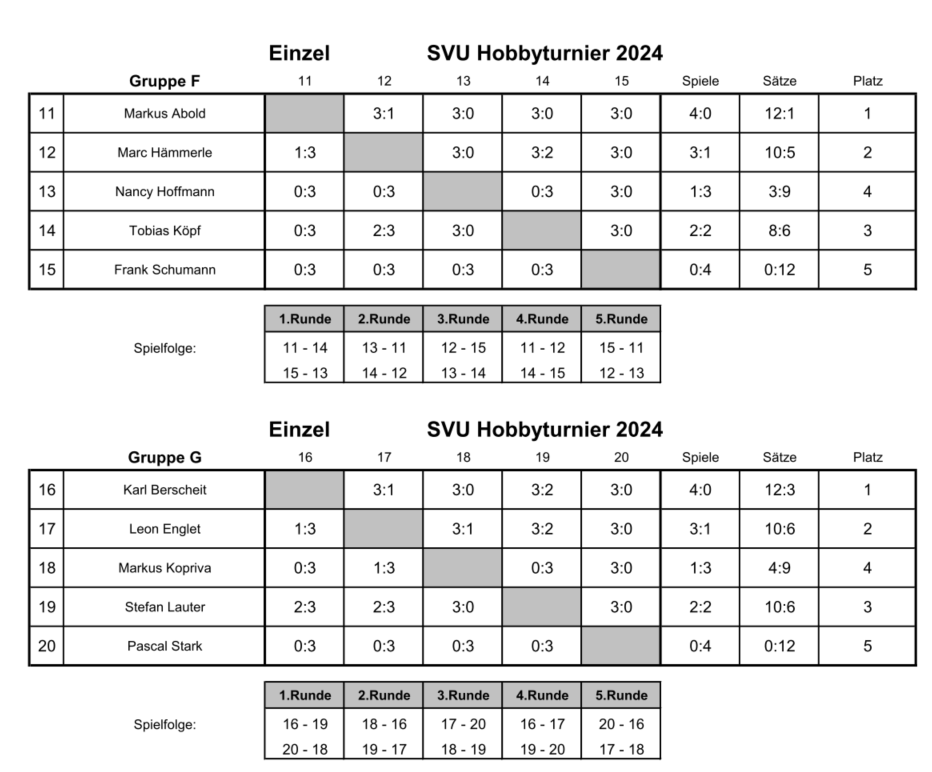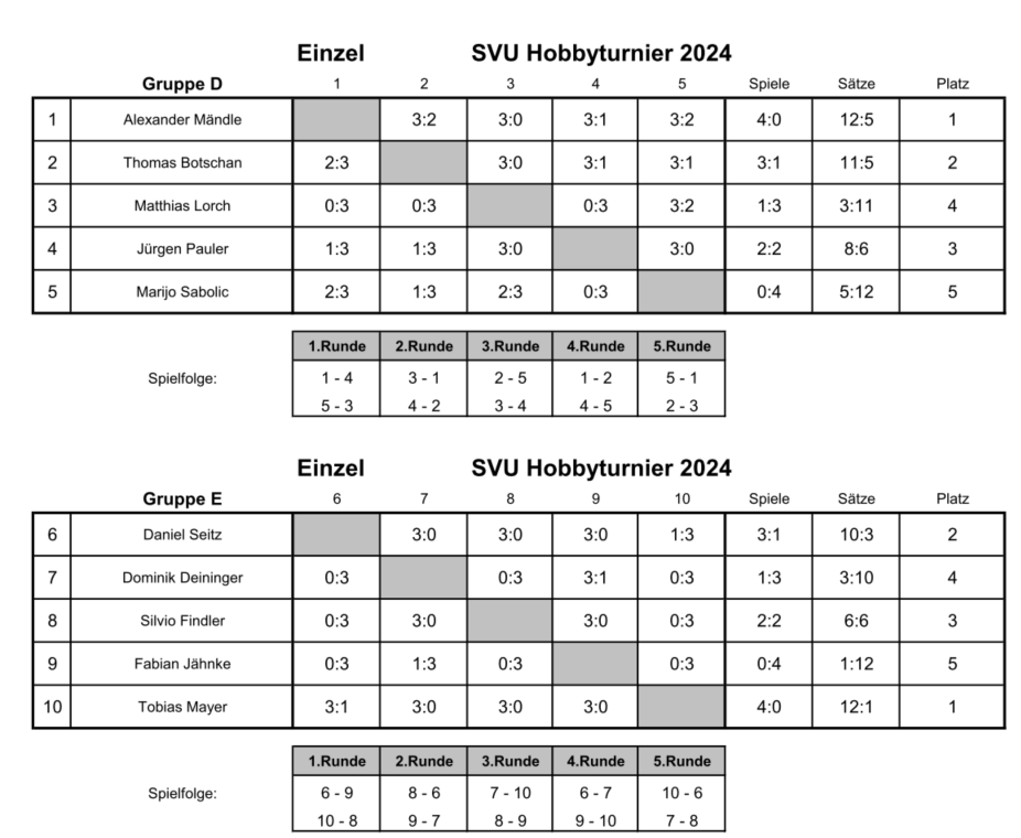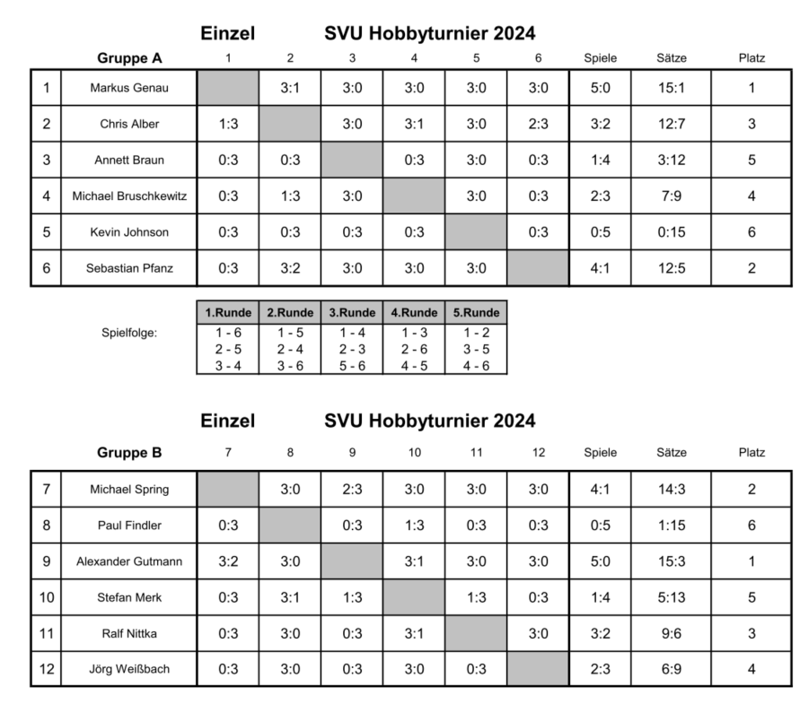 Nachfolgend findet ihr die Ergebnisse des SVU-Hobbyturniers 2024: